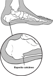 - Esporão de calcâneo: o esporão se caracteriza por um pequeno osso que se desenvolve a partir do osso do calcanhar, devido a um acúmulo de cálcio na região, causado por sobrecargas e estresse excessivo.